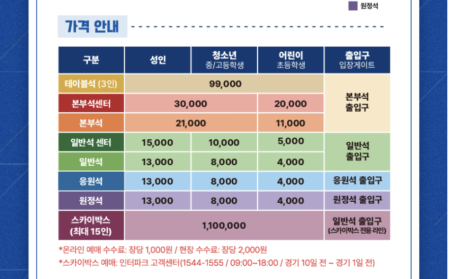 1. 경기당일 매표소가 혼잡하오니, 가급적 모바일티켓을 활용하여 편안한 입장을 권장드립니다.
