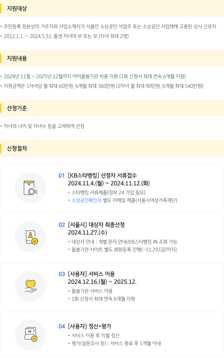 - 신청서 작성 : 각 지원 프로그램에 맞는 신청서를 작성해야 합니다. 신청서는 온라인으로 제출할 수 있으며, 필요한 서류를 함께 첨부해야 합니다.